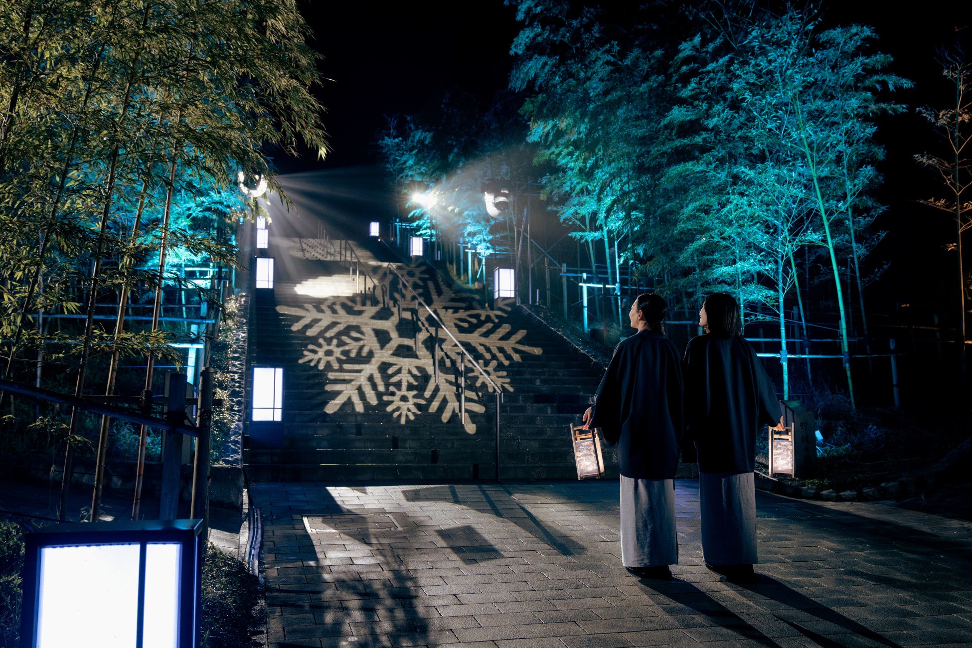 「音信川うたあかり」では、金子みすゞの詩にあわせて、15作品のプロジェクションマッピングによる光と音の演出を楽しむことができます。界 長門トラベルライブラリーでは、16作品目の演出として「明るい方へ」の詩をテーマにした空間を演出します。山口市の無形文化財である徳地和紙のライトと影絵で彩られた「あかりのライブラリー」で、金子みすゞの世界観に浸ることができます。イベントをより一層楽しむことができる、宿泊者限定の特別な空間です。