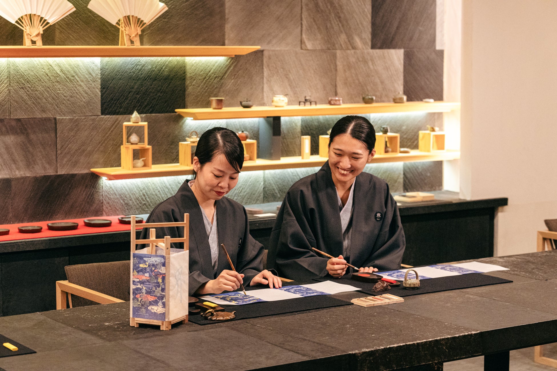 長門市出身の童謡詩人「金子みすゞ」の詩をモチーフにしたイラストが描かれた、界 長門オリジナルの行燈に、7色の彩墨(*1)で絵付け体験を行います。絵付けでは山口県の伝統工芸品である「赤間硯」を使用し、体験中は赤間硯ならではの墨の伸びや発色の良さを体感することが可能です。また、赤間硯の特色や歴史にまつわる解説をスタッフから受けることができ、絵付けしたオリジナルの行燈は旅の記念に持ち帰る事ができます。
