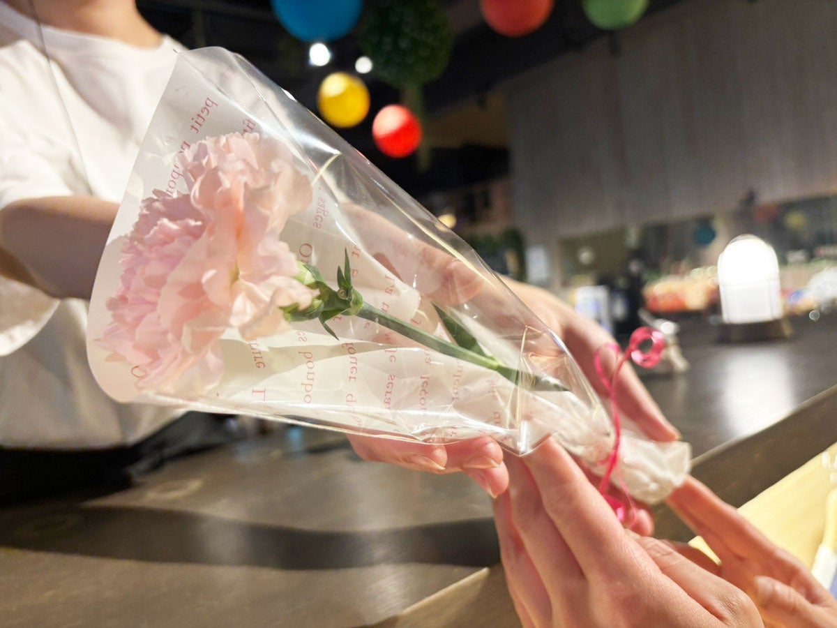 おふろcafe ハレニワの湯の母の日イベント開催中。母の日当日には女性のお客さまへのカーネーションのプレゼントも