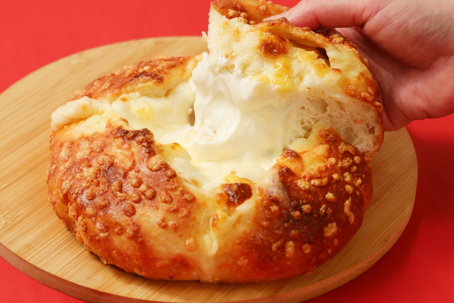 生地からとろ~っとチーズが溢れ出すビジュアルが目を引きます。まるでチーズに溺れるよ