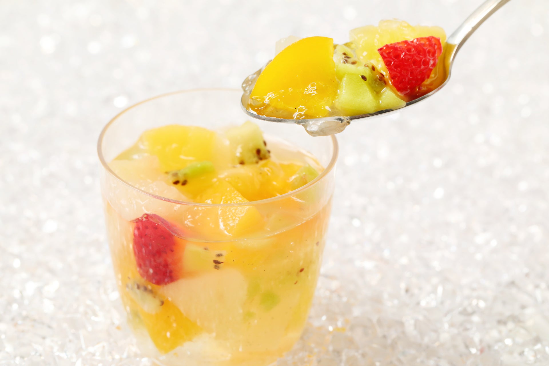 ツの総量を2倍にしました。ライム香る口当たりなめらかなゼリーと、5種類のフルーツ(黄