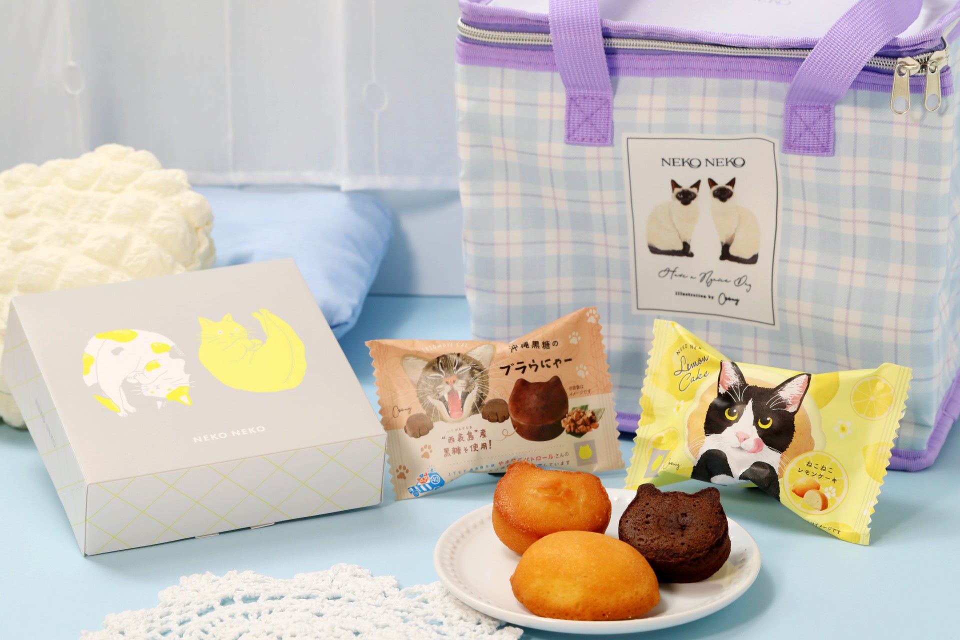 こねこランチ保冷バッグ』と『ふぃにゃんシェ(プレーン/ショコラ)』各2個、『ねこね
