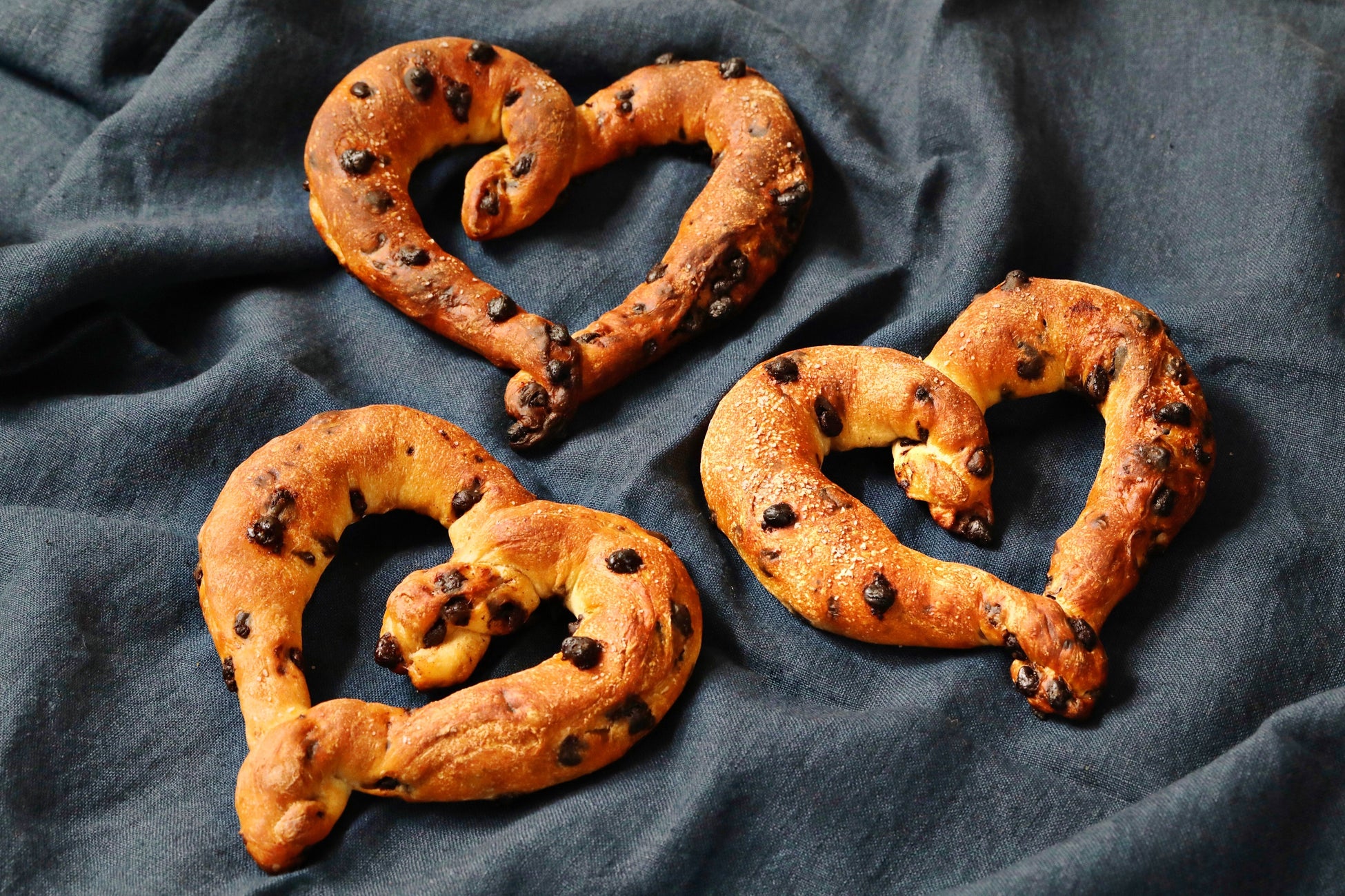 商品。フランス生地にチョコチップを練りこみ、ハート