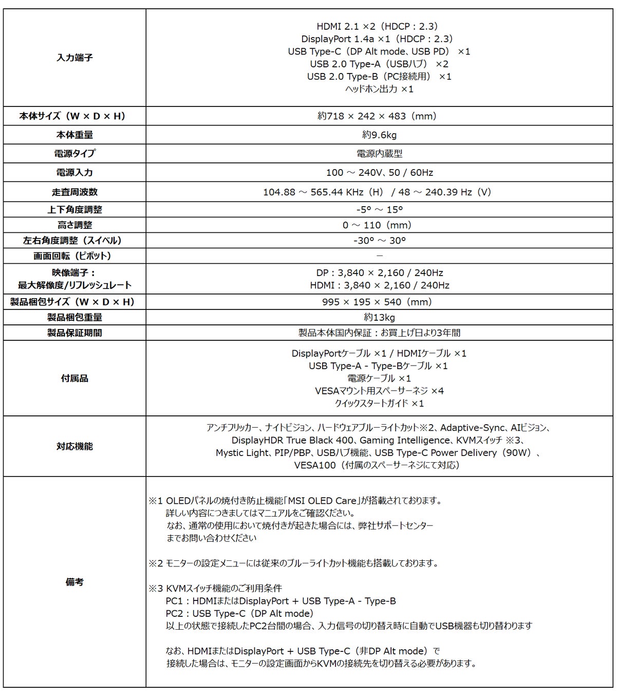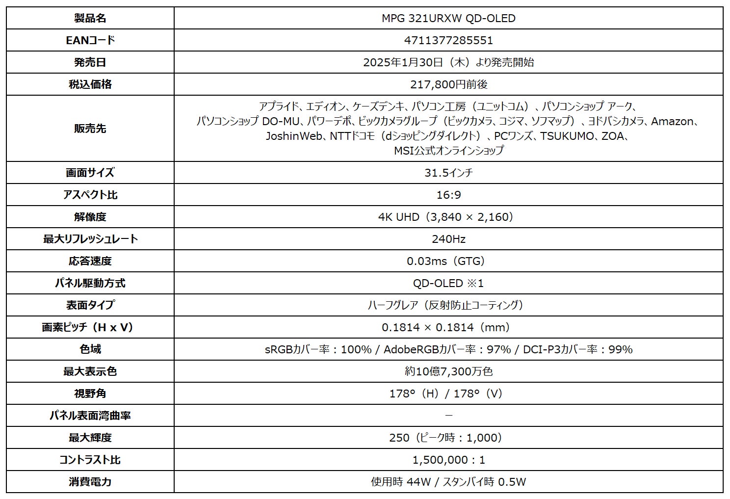 製品ページ:https://jp.msi.com/Monitor/MPG-321URXW-QD-OLED