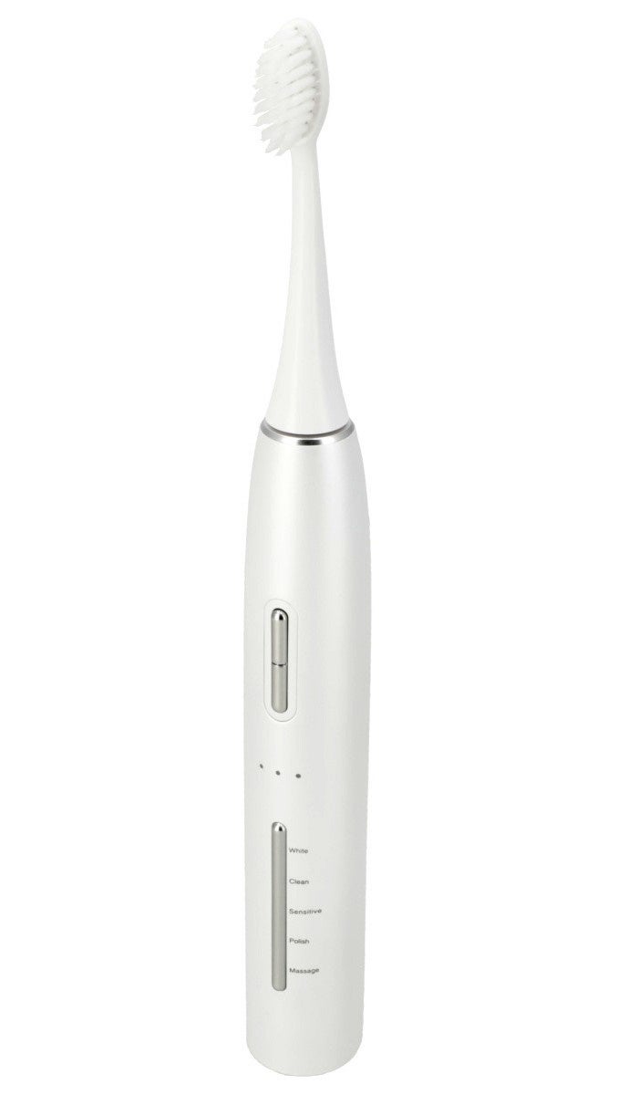 5モード(White/Clean/Sensitive/Polish/Massage)+3段階(強/中/弱)の強度切替が可能で、2分で自動的に電源がオフになるオートストップ機能も搭載しています。