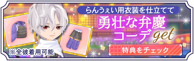 イベント期間内にらんうぇい用の衣装を仕立てたり、「らんうぇいチケット」を集めたりすると、限定衣装を身に着けたちび彼アバターや、彼とのお揃いコーデ、お部屋を一新できる背景やお着物が手に入ります。