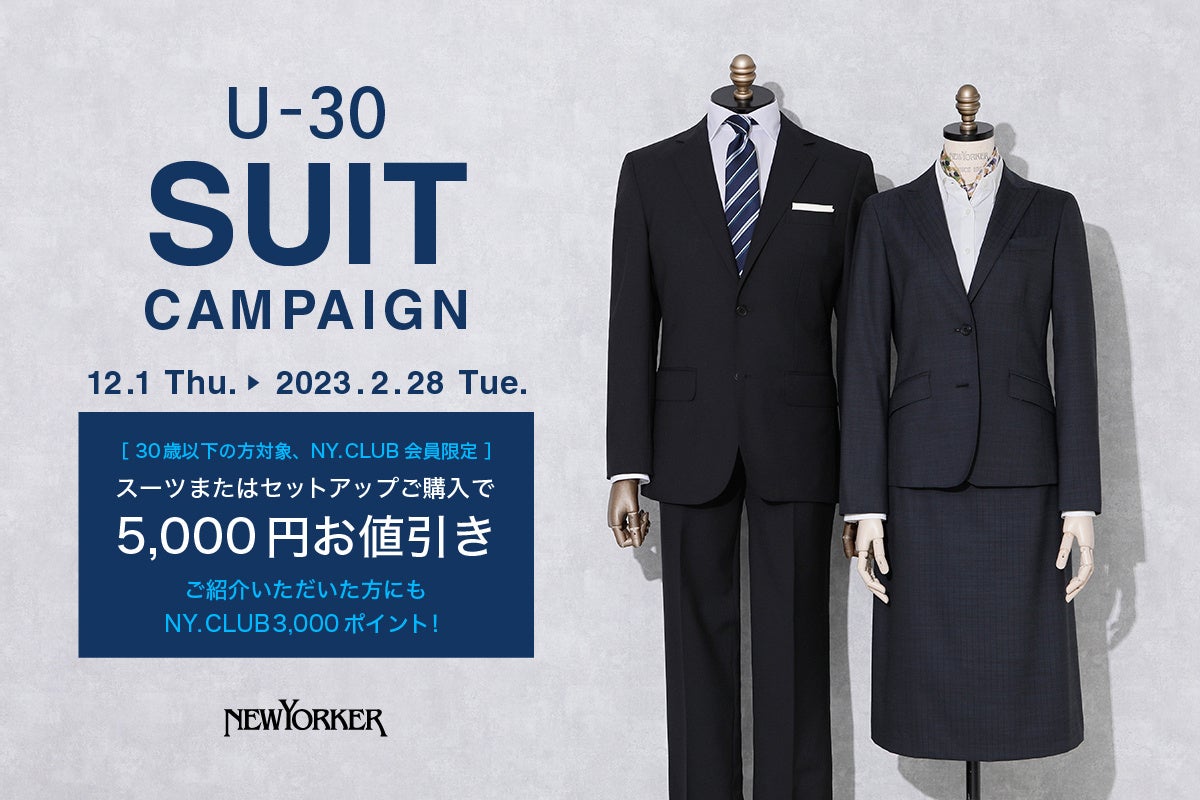 【ニューヨーカー】12月1日(木)~2月28日(火)の期間、メンズ&ウィメンズ『U-30スーツキャンペーン』を 開催!