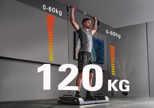 ウェイトは500g単位で細かく設定でき、最大120kg(片側60kg)まで調整できます。さらに、負荷調整は本体の