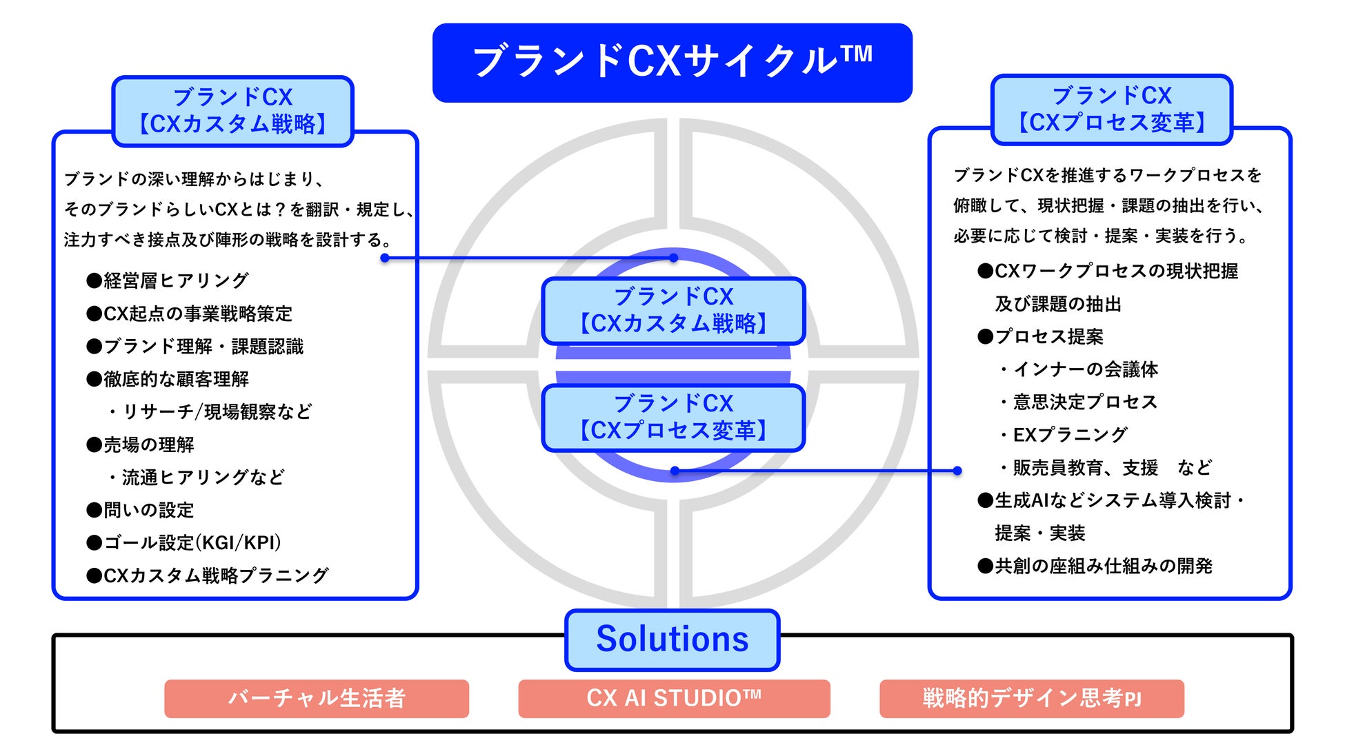 上記の戦略とプロセス変革に基づき、以下の具体的なソリューションを通じて「ブランドCXサイクル™」を回し、事業成長を加速させます。