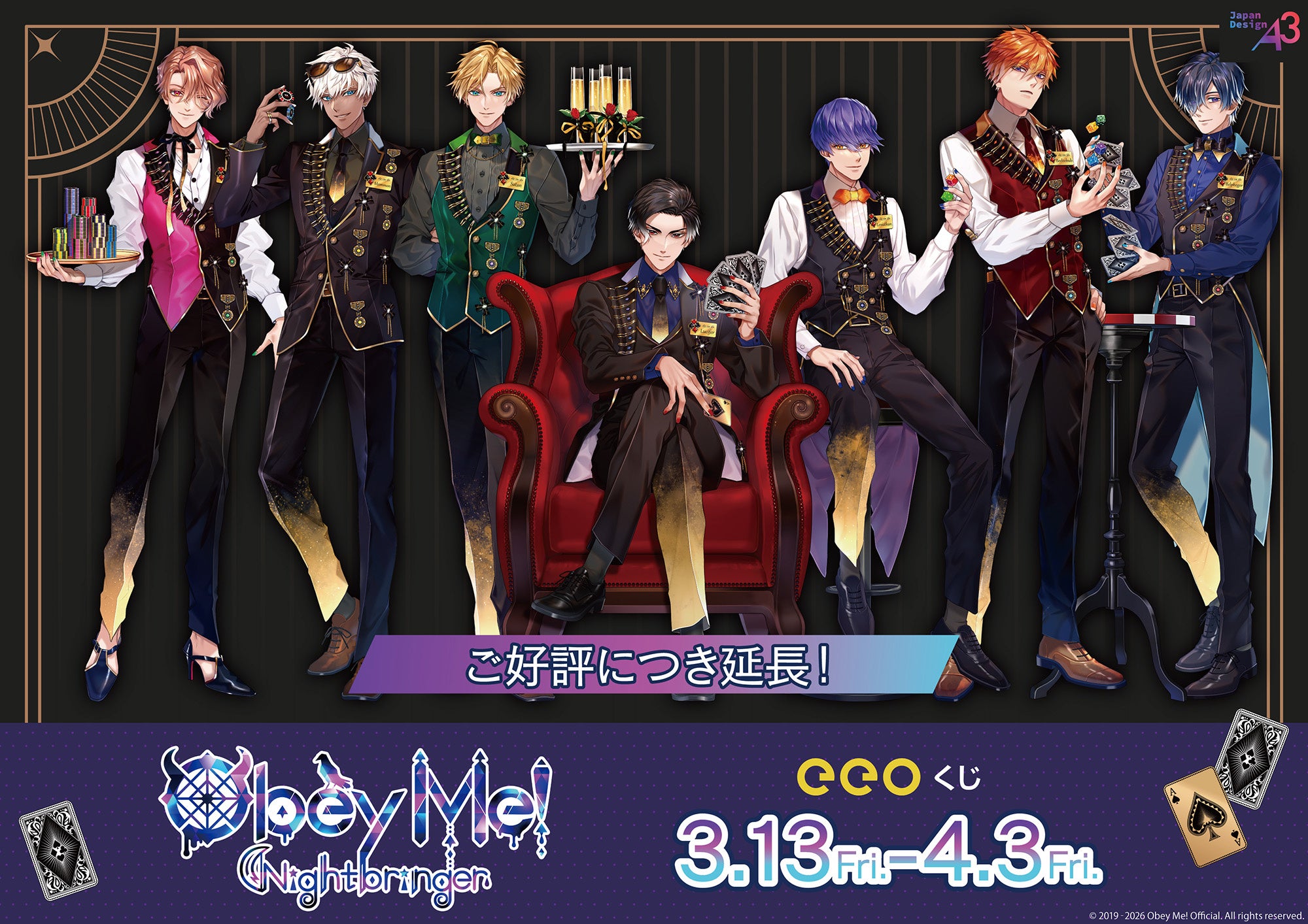 『Obey Me! Nightbringer』のオンラインくじ「eeoくじ」が発売決定! 2026年3月13日(金)から、通販サイト「eeo Store online」で好評発売中です。