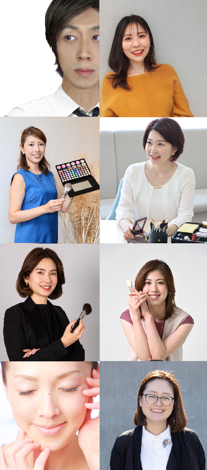 主にコスメブランドのプロモーション、レセプション、ポップアップイベントの際に、お客さまへのタッチアップメイクをしている。また、一般のお客さまから起業家、アーティストなどの撮影用メイクや、対面/オンラインメイクレッスンなどでも活動中。 美容業界歴30年の間に、多くの方々の肌を見て触れてきたこと、そしてスキンケアやメイク製品の種類やテクスチャーなどアイテムに関する幅広い知識を活かして、お客さまのお悩みを解決する。