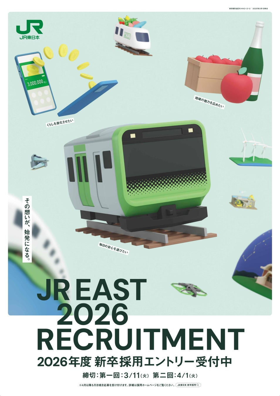 詳細はJR東日本の採用ホームページ(https://www.jreast.co.jp/recruit/ )をご覧ください。
