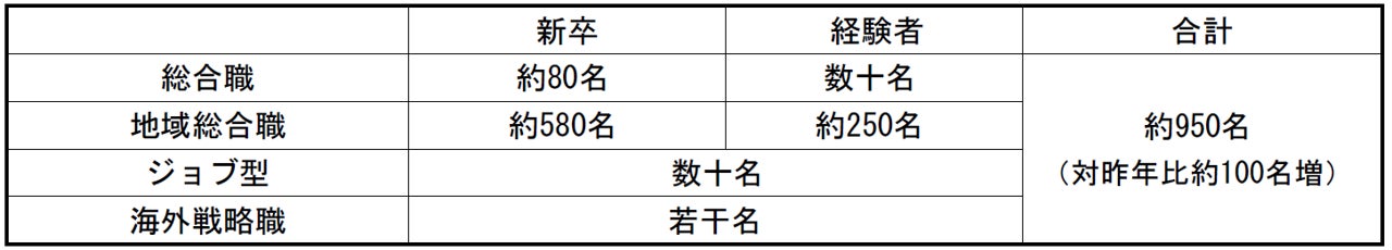 ○2026年度の採用では、前年度と比較して約100名拡大します。