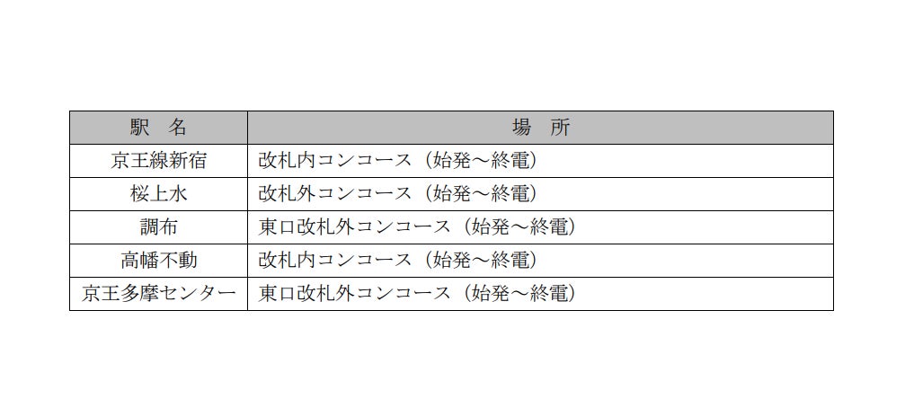 調布駅(中央口改札窓口)、高幡不動駅(改札窓口)、