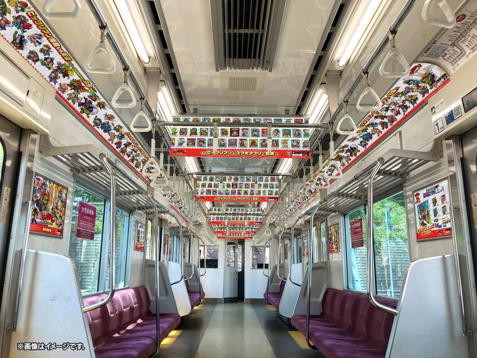 京王線の車内中づりポスター、まど上ポスター、ドア横ポスターをビックリマンでジャックします。