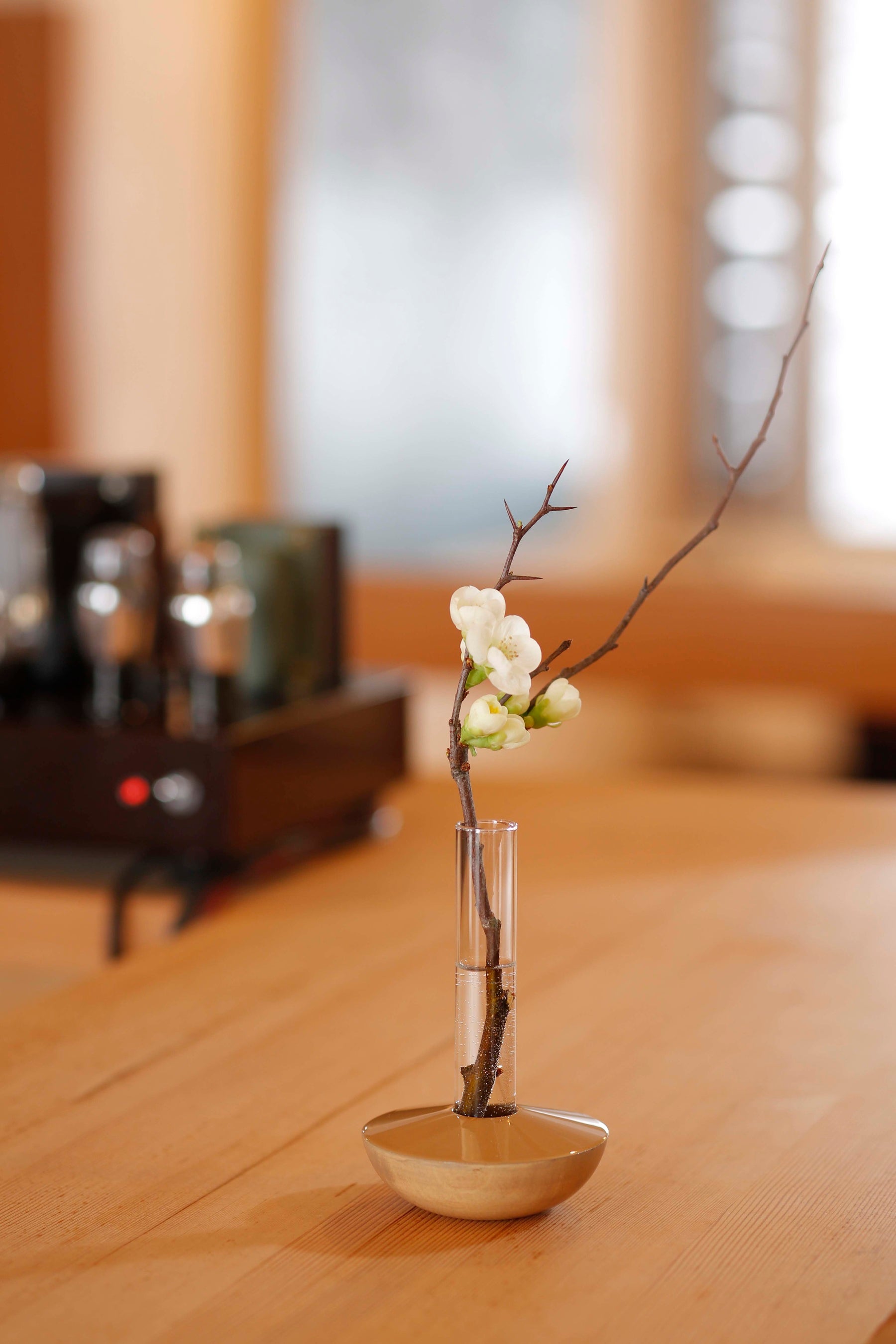 その花を生けるフラワーベースは福島県の匠たちによる一輪挿し。
