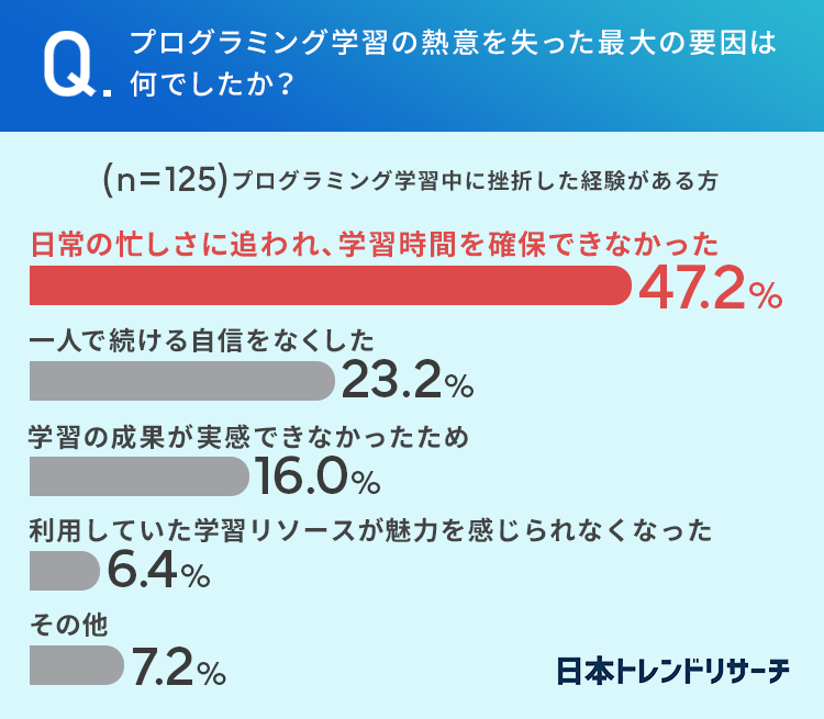 さらに、プログラミング学習の熱意を失った最大の要因を聞いてみました。