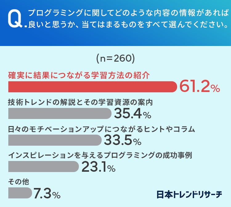 61.2%と半数以上の方が「確実に結果につながる学習方法の紹介が欲しい」と回答しています。