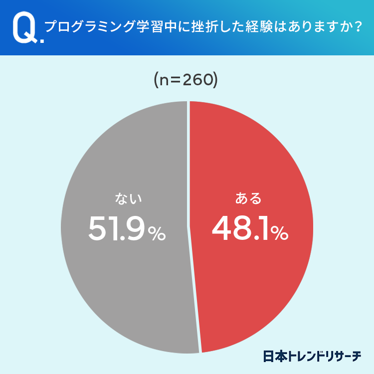 48.1%と半数近くの方が「プログラミング学習中に挫折した経験がある」と回答しています。