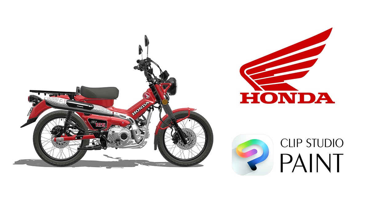 本素材は、同日公開の最新の「CLIP STUDIO PAINT Ver.5.0」に対応しており、金属のメタリックな質感や光沢表現を活かしたリアルな描写が可能です。「CLIP STUDIO PAINT」を利用するクリエイターは、Honda「CT125 Hunter Cub」を用いた走行シーンなどを、イラスト、マンガ、Webtoon作品などの制作において、商用・非商用を問わず、利用できます。(*1)