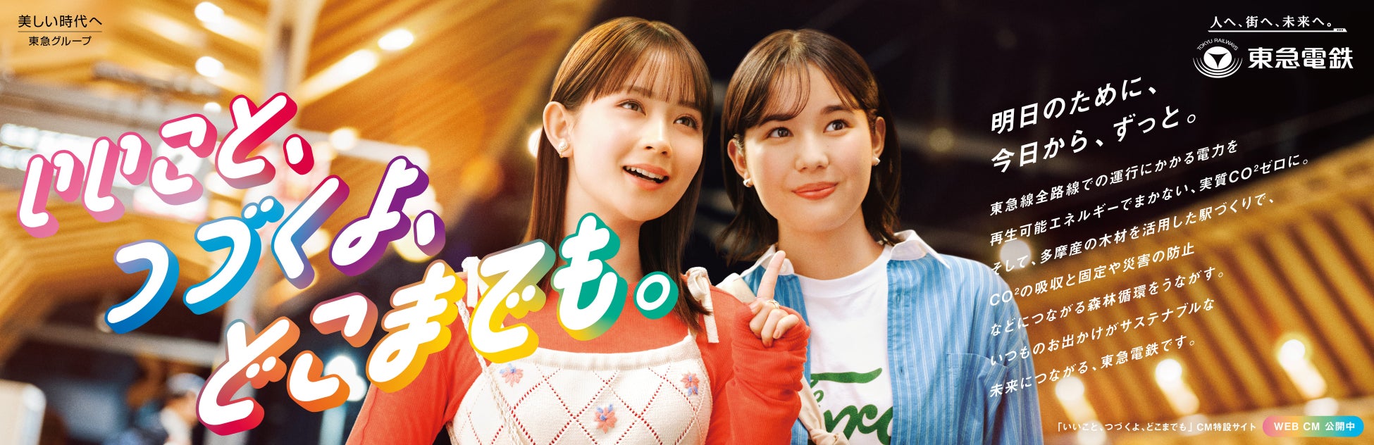 当社では「人へ、街へ、未来へ。」のスローガンのもと、俳優の畑 芽育さんを起用した新CM「いいこと、つづくよ、どこまでも。」シリーズを制作しました。シリーズ第1弾として、2025年3月24日(月)から「鉄道ネットワーク拡充篇」と「環境篇」の2コンテンツをWeb広告、公式Youtubeチャンネル、交通広告、映画館広告などで配信します。なお、俳優を起用したCM制作は当社初の試みです。