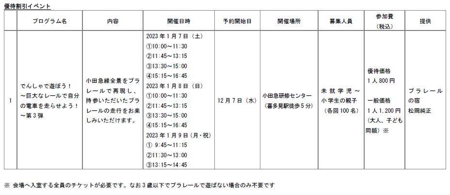 ・ロマンスカーミュージアムへ、大人と子どもは100円、幼児は50円引きで入館いただけます(本サービス会員と同伴のご家族の場合に限る)