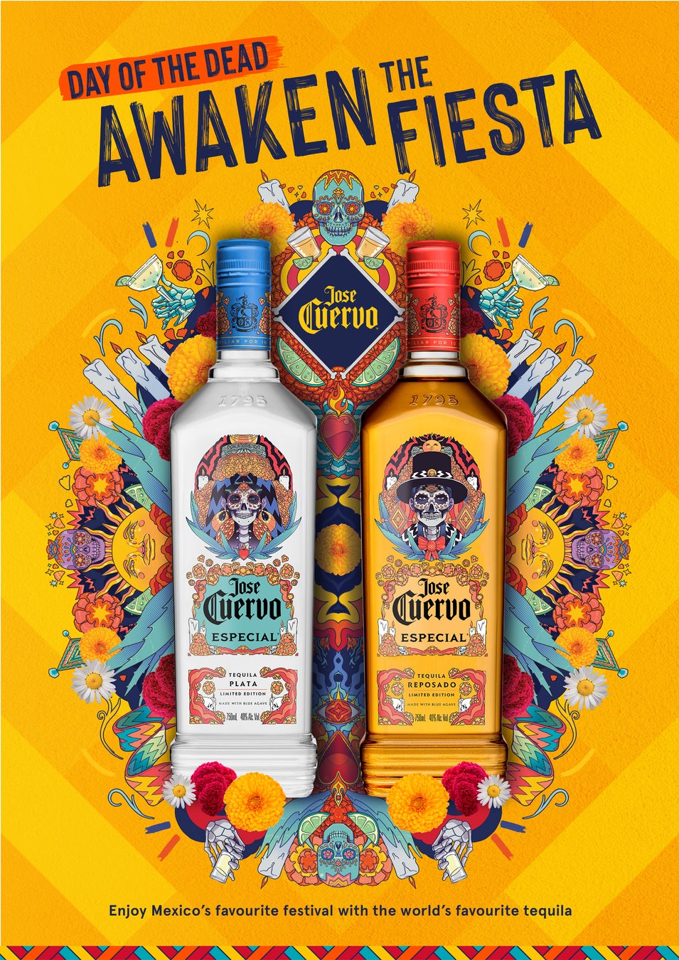 本商品は、“死者の日”の象徴的なアイコンである「カラベラ(ガイコツ)」と「マリーゴールド」をデザインした限定商品です。“死者の日”は毎年10月31日から11月2日の期間、キリスト教で全ての死者の魂のために祈りを捧げる日とされています。メキシコをはじめとしたラテンアメリカ諸国に古くから伝わる文化で、2003年にユネスコ無形文化遺産に登録されています。9月中旬以降、東京・大阪・名古屋・札幌・博多で大型ビジョンを使用した限定動画を展開することで、世界の多様な文化とテキーラの魅力を発信し、認知拡大と飲用機会の創出を図ります。