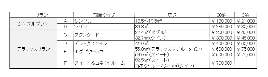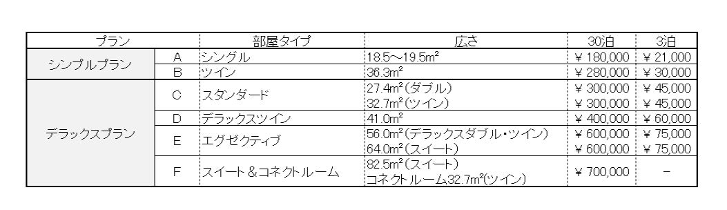 「3泊プラン」・「30泊プラン」 2022年4月1日(金)~9月30日(金)
