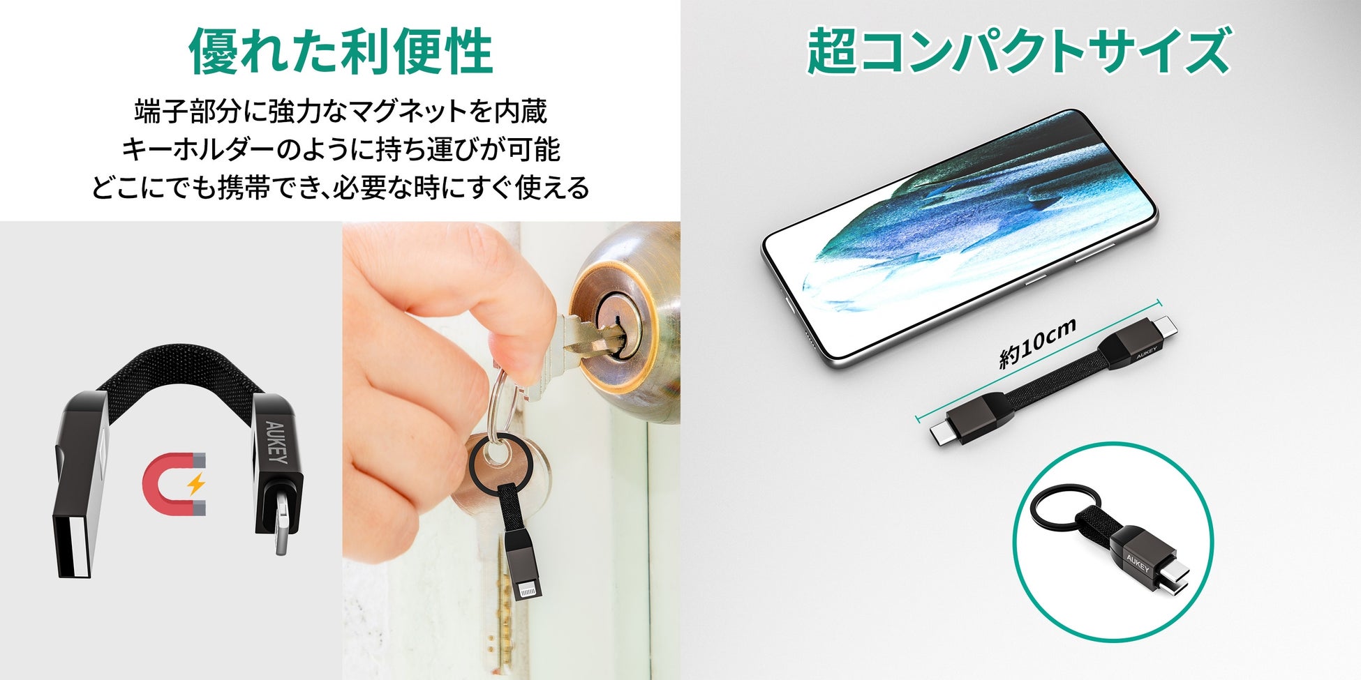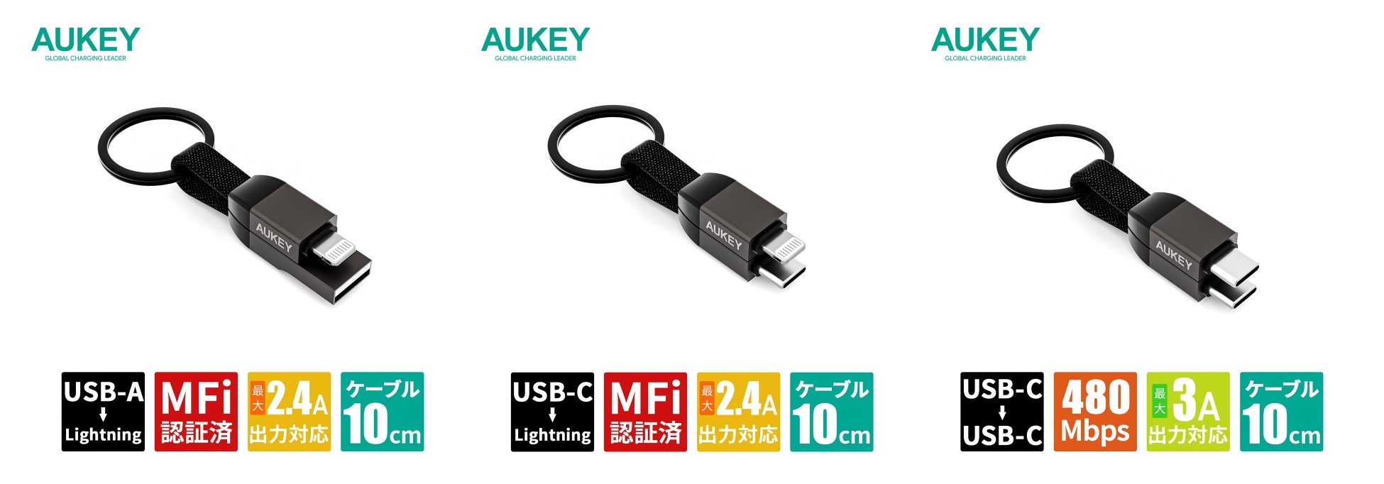 AUKEY発!ミニマリストにおすすめ!超コンパクトなケーブル!「Circlet Series キーホルダー型USBケーブル (10cm)」4月21日(金)に販売開始!