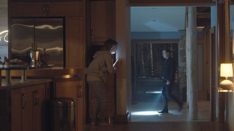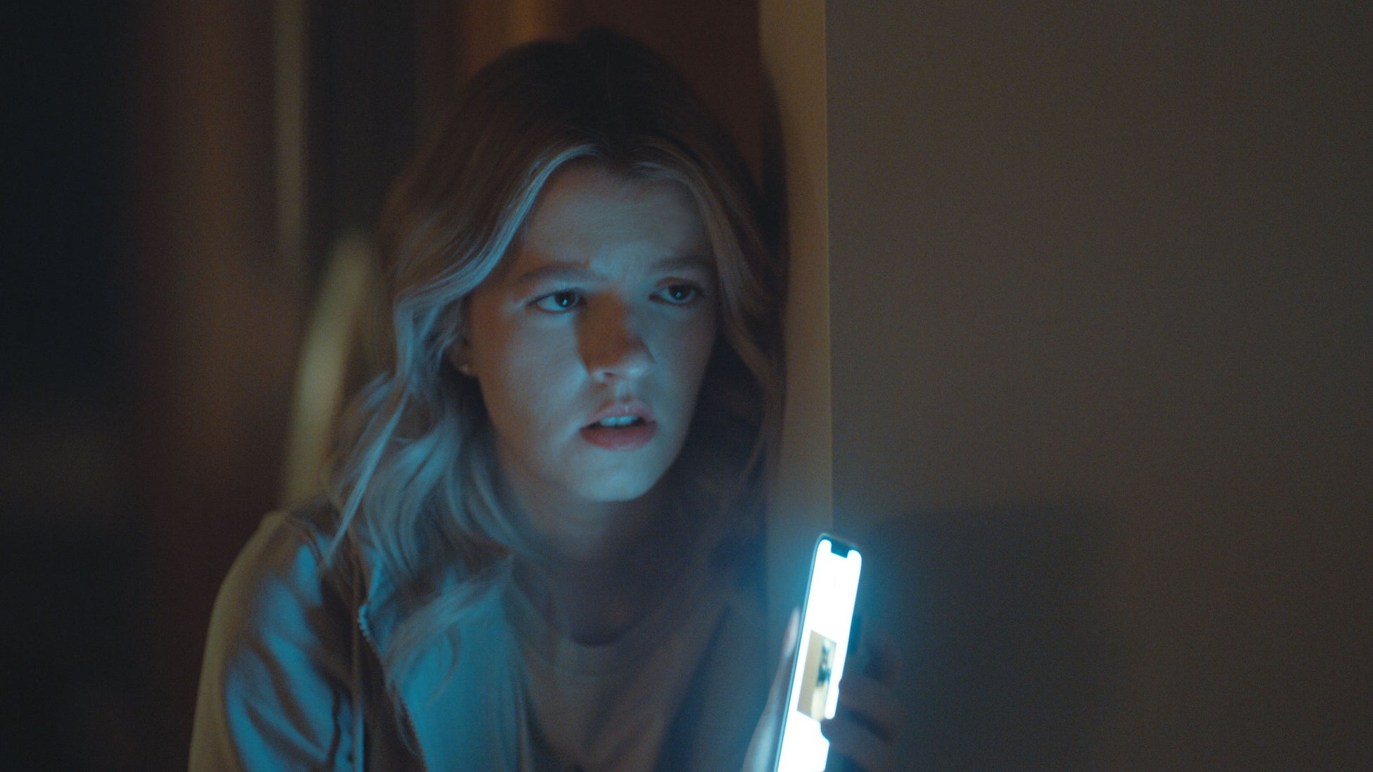 ペットシッターのアルバイトで、人里離れた豪邸を訪れた盲目の少女ソフィ。視覚障がいを逆手に取り、金目のものを盗み出そうとしていた。ところが日没後、武装強盗が屋敷内に侵入する。目的は、壁に隠された巨大な金庫だ。命の危険を感じたソフィは、視覚障がい者サポートアプリ《シーフォーミー》を起動し、元軍人でFPSゲームの熟練プレーヤーのケリーに助けを求める。圧倒的に不利な状況下、侵入者の攻撃から身をかわしていくも、バッテリー残量は容赦なく減っていき…。ケリーの“目”を失った時、ソフィが生き残る方法はあるのか——!?