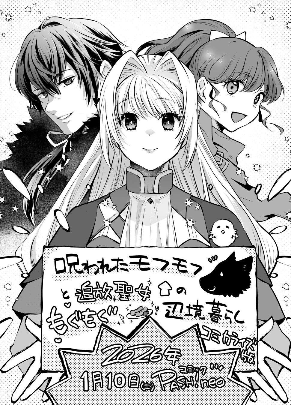 2026年1月9日(金)に発売予定の小説『呪われたモフモフと追放聖女のもぐもぐ辺境暮らし』(PASH!ブックス)のコミカライズが決定しました。