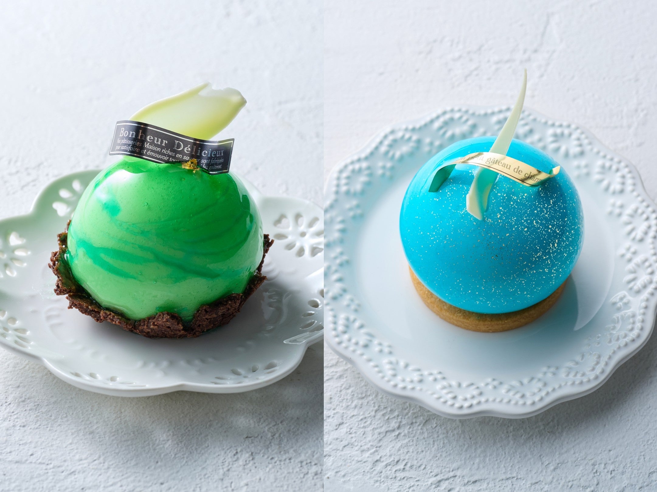大宮の象徴である「氷川神社」と正式にコラボレーションしている洋菓子店から、宝石をイメージしたムースケーキが新登場。「エメラルド」は鮮やかな緑色が目を引く、ホワイトラムが香る大人向けの一品です。爽やかなライムムースの中に、ライムとホワイトラムのジュレを閉じ込めました。また「アクアマリン」は、澄み切った海のようなブルーが美しいケーキ。つややかな杏仁ムースの中に、みずみずしい桃の果肉入りゼリーを忍ばせました。杏仁のやさしい香りと、大ぶりにカットした桃の食感が口いっぱいに広がります。※数量限定:1日各15個 ※エメラルドのみ、アルコール:使用
