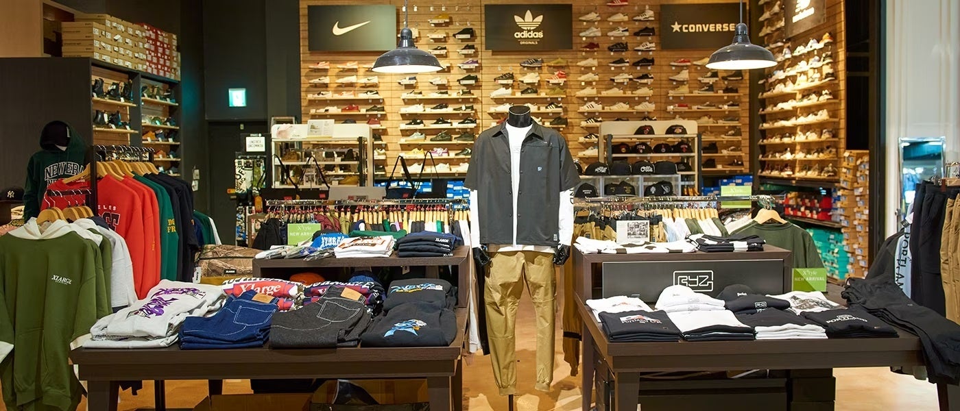 バスケットボールの新たな楽しみ方・ライフスタイルの提案をコンセプトに、NIKE、JORDANブランドのアイテムを豊富に展開。ジョーダン、レブロン等、シグネチャーモデルのシューズ、NBAユニフォーム等ZONE OF HOOPS+店舗限定の商品も取り揃えております。