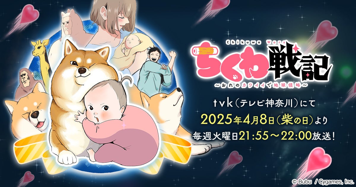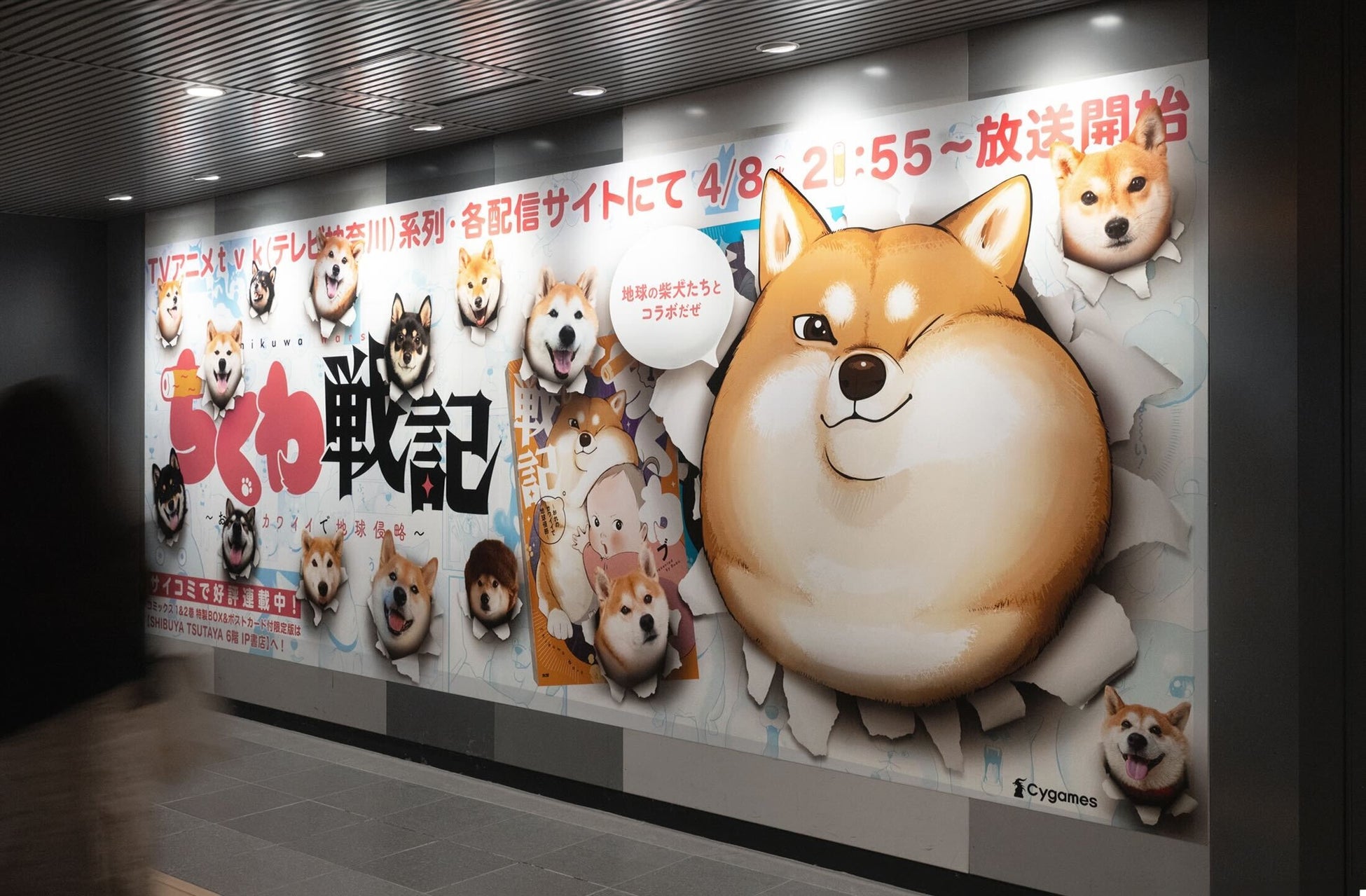 株式会社Cygames(本社:東京都渋谷区、代表取締役社長:渡邊耕一)は、既報の通り、マンガ配信サービス「サイコミ」で連載中の漫画『ちくわ戦記~おれのカワイイで地球侵略~』のショートアニメを2025年4月8日(火)からtvk(テレビ神奈川)と各配信サービスで放送します。この度、こちらの放送開始を記念して、『ちくわ戦記~おれのカワイイで地球侵略~』と全国の柴犬がコラボした巨大看板広告を渋谷駅で2025年4月7日(月)から4月13日(日)までの期間限定で掲出します。