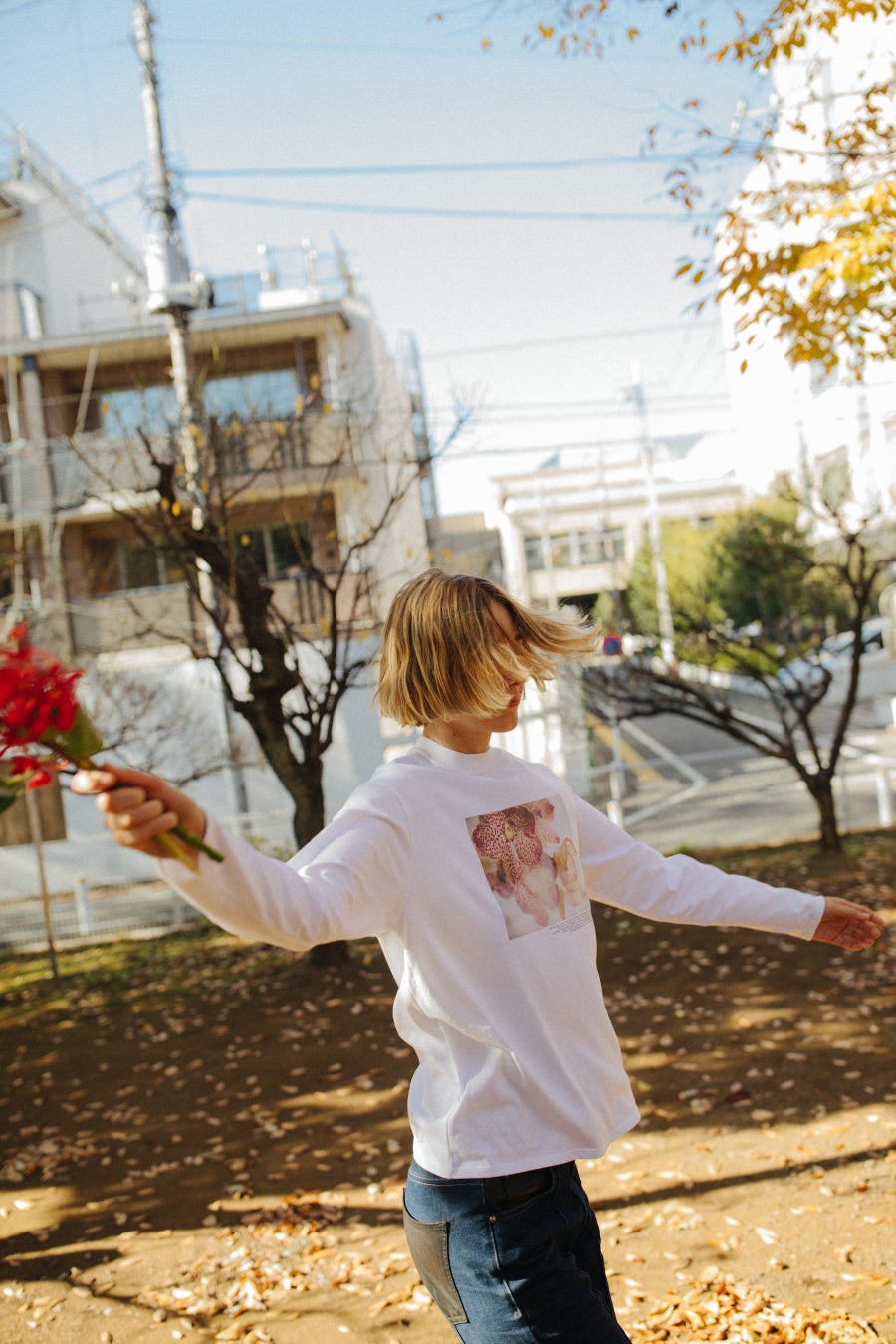 第一弾として、世田谷・梅丘のフラワーショップ「duft(ドゥフト)」と初となるコラボレーションアイテムを展開します。「duft」のオーナーが特別にフラワーアレンジメントを手がけ撮影をおこなったフォトTシャツにスカーフ、「SALON adam et ropé」のブランドフィルターを通して共同でデザインをおこしたグラフィックTシャツ、持ち運ぶ生花への思いを込めたフラワーバッグの全4型をご提案します。