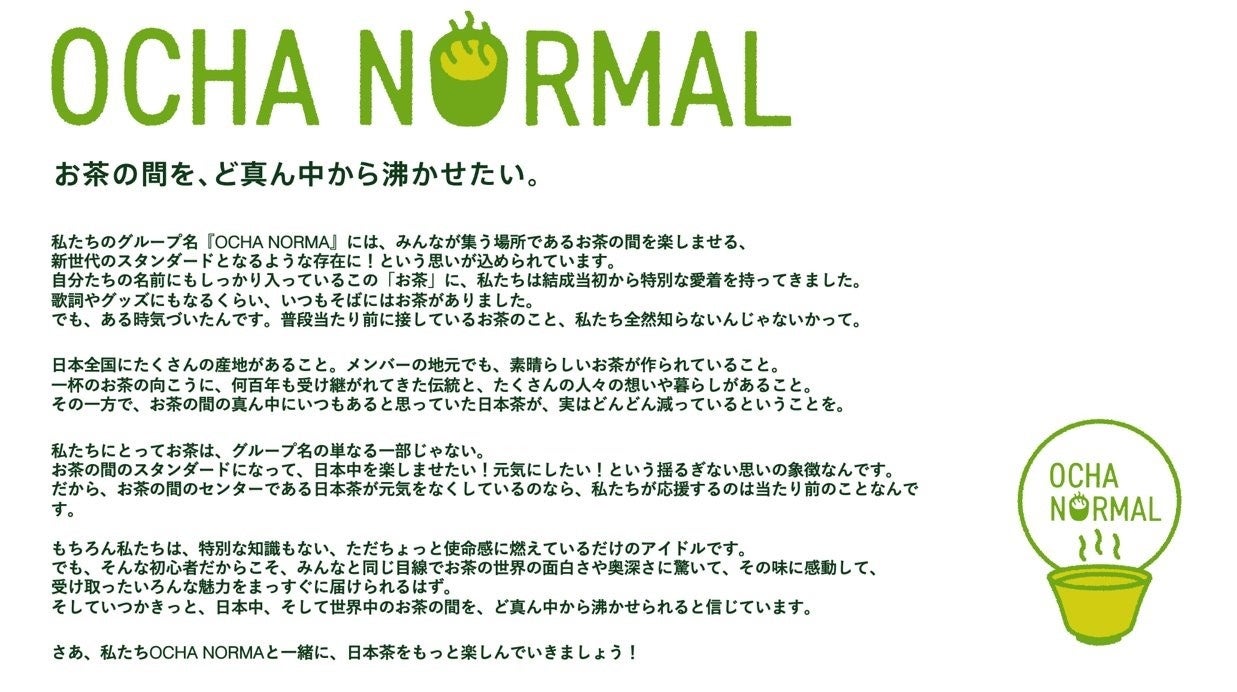 このたび、第二弾としてハロープロジェクトに所属する人気アイドルグループ「OCHA NORMA」をパートナーとした日本茶産業支援プロジェクト~OCHA NORMALプロジェクト~を開始します。