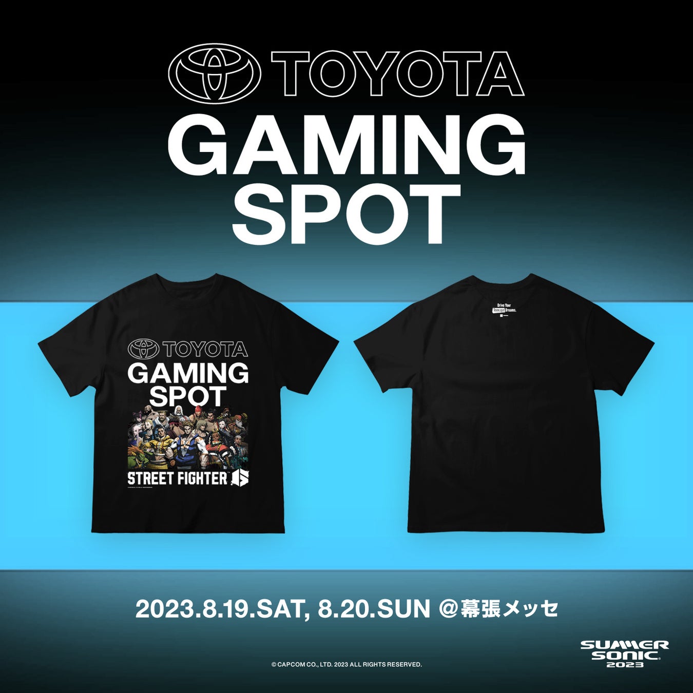 その他にも、ブース内では今回のサマーソニックとのコラボアイテムやストリートファイター6とのコラボTee等を数量限定でプレゼントする企画や、オリジナルグッズの販売なども行われ、サマーソニックにお越しいただく皆様には、ぜひこの特別なスポットで楽しいひとときを過ごしていただきたいと思います!