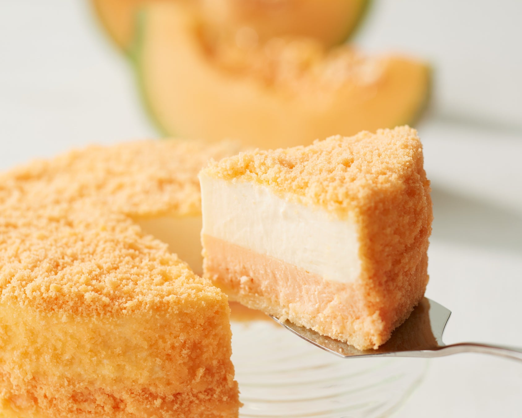 北海道産生クリームとイタリア産マスカルポーネを合わせた、なめらかなレアチーズを上層に。下層には、北海道産赤肉メロンのピューレを練り込んだベイクドチーズケーキを重ね、さらに赤肉メロンのスポンジクラムでやさしく包み込みました。赤肉メロンのふくよかな甘みと、チーズの奥行きあるコクが織りなす、夏にふさわしい華やかな味わいをお楽しみいただけます。
