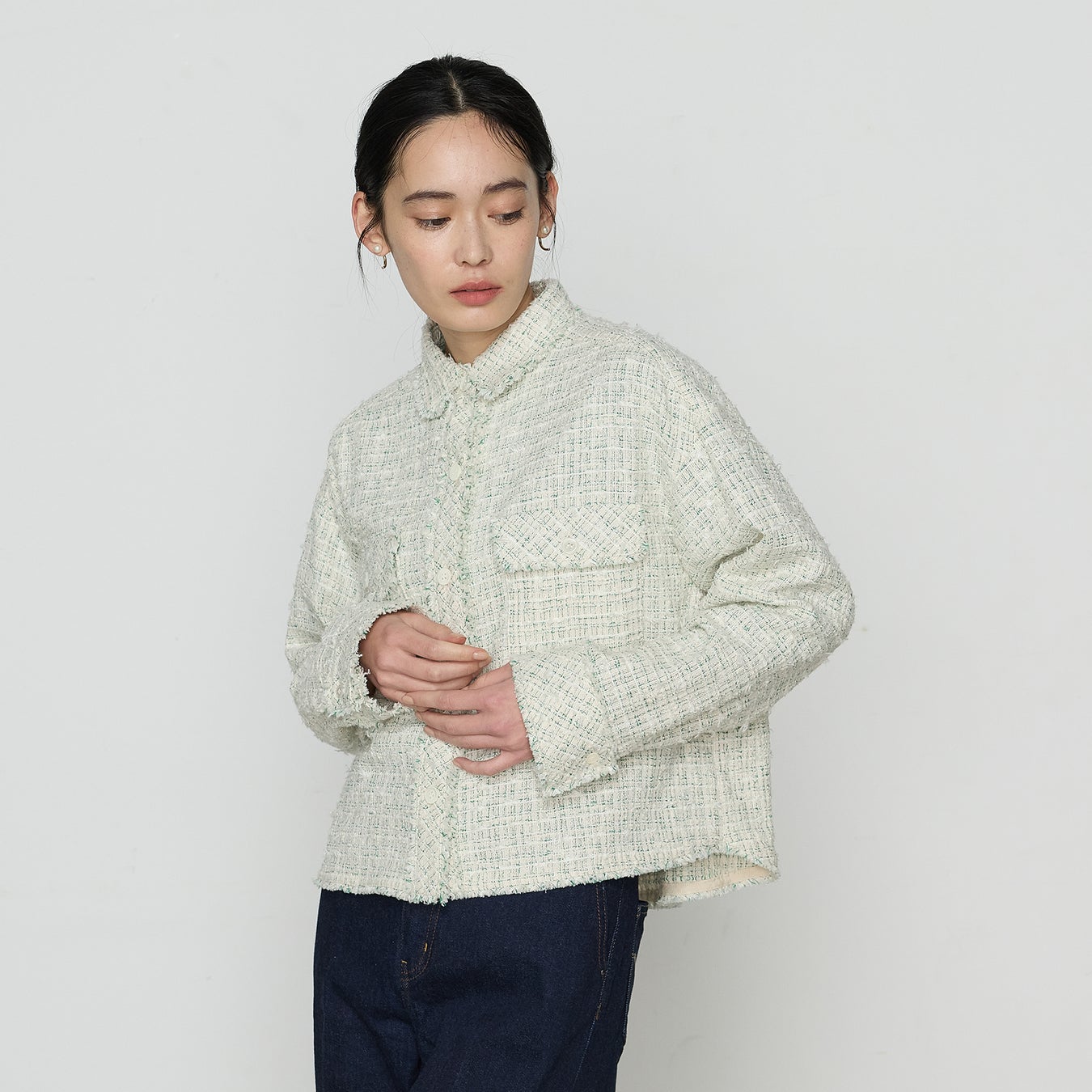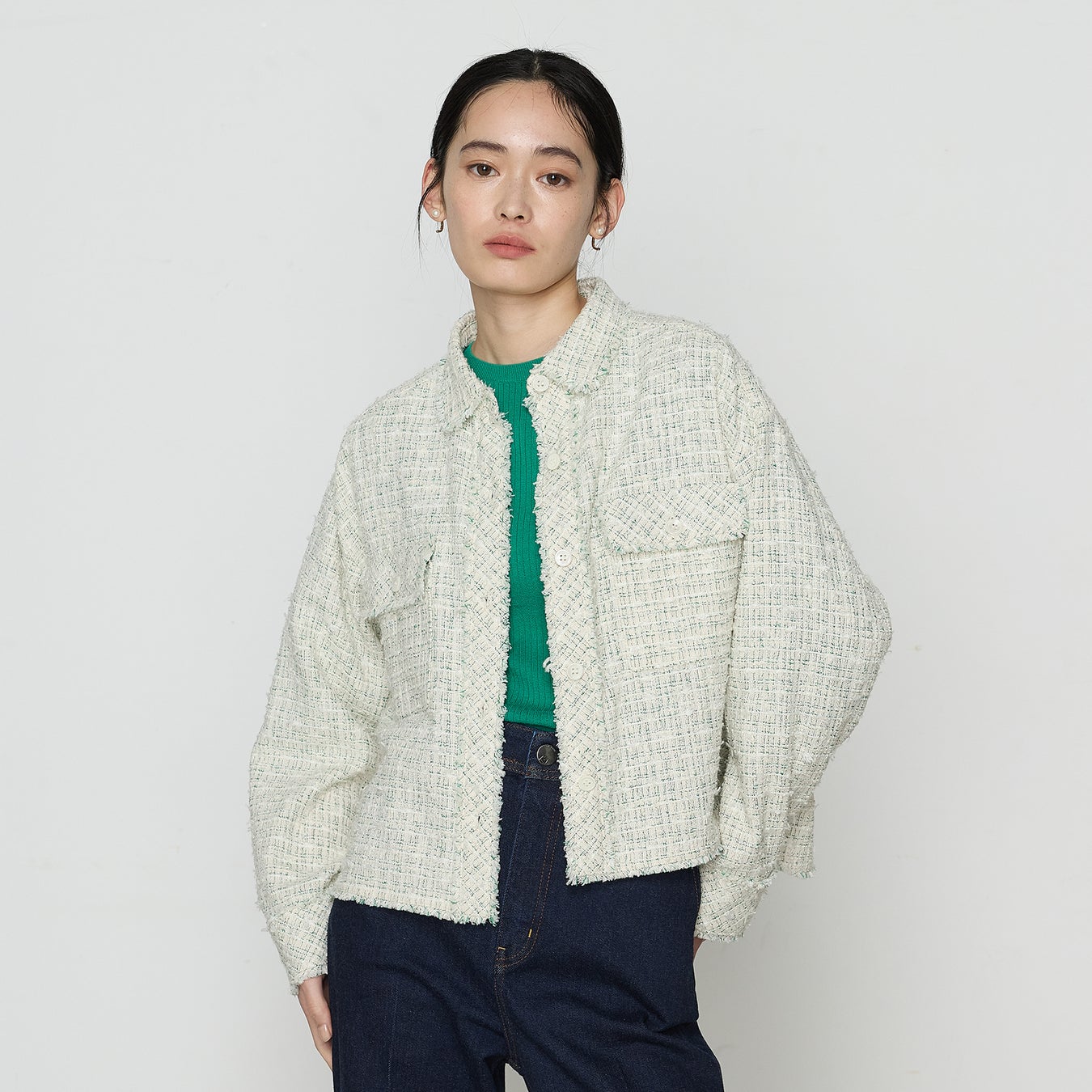 ツイードのきれいめな雰囲気はキープしているので、オフィスからデイリーまでシーンレスに活躍します。