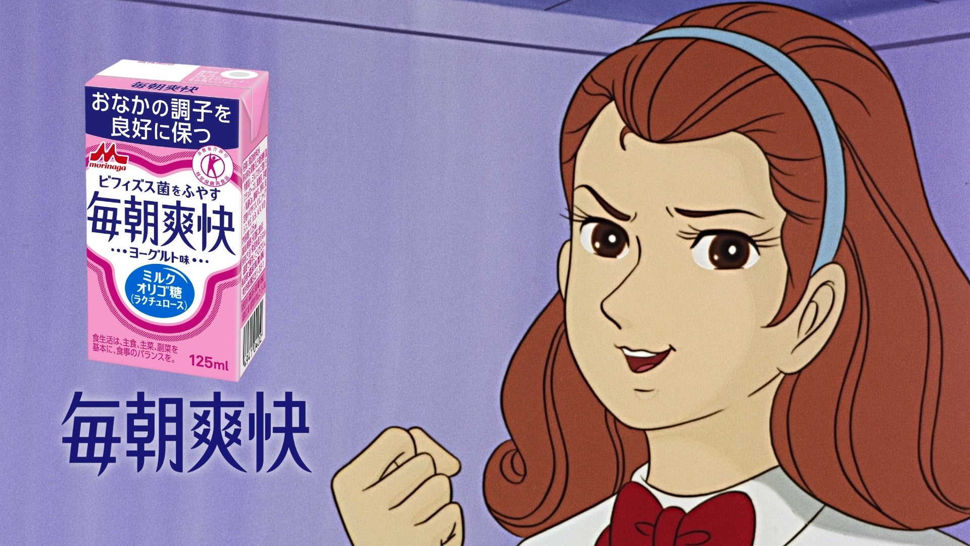 新TVCMでは、おなかの悩みを感じている『アタックNo.1』の主人公・鮎原こずえが、本郷コーチからおなかの悩みの解決策として「毎朝爽快」「毎朝爽快Light」を教えられ、前向きにバレーボールに取り組む姿を描いています。