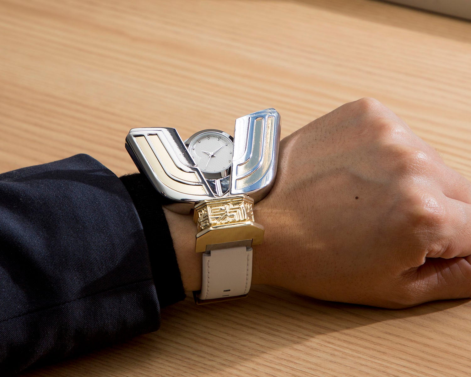 ウルトラマンティガの変身アイテム「スパークレンス」をモチーフにした、これまでにないこだわりの3WAY時計が発売いたします。スパークレンス本体の一部形状を、重厚感のあるダイキャスト素材で再現した本格仕様の時計は、付属の牛革素材のベルトを付けて腕時計として、カラビナパーツに付け替えてバッグチャームとして、ベルトパーツを外してそのまま置時計として、3つのシーンでご使用いただけます。時計の心臓部であるムーブメントは、品質と高い技術力を世界に誇るメイドインジャパンの「MITOYA」を使用し、時計本体は手動で開閉するギミック付きで、ウルトラマンティガの変身アクションを再現してお楽しみいただけます。多様なシーンで映える、ファン心をくすぐるこだわりのアイテムが登場いたします。