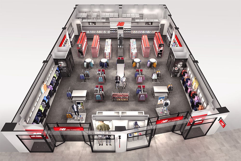 店内は売場面積が約2倍となり、人気のライフスタイルシューズだけでなく、ランニングシューズ、キッズシューズ、アパレル、アクセサリーまで充実したラインナップとなります。グローバルファクトリーアウトレットのストアデザインを採用し、ブランドカラーの赤を基調としたシンメトリーを意識した什器配置のため、ショッピングがしやすい設計となります。また、360度足を正確に計測できる「3Dスキャン」を導入し、ストアスタッフがお客様ひとりひとりの足と目的に合うフィットしたシューズをご提案します。