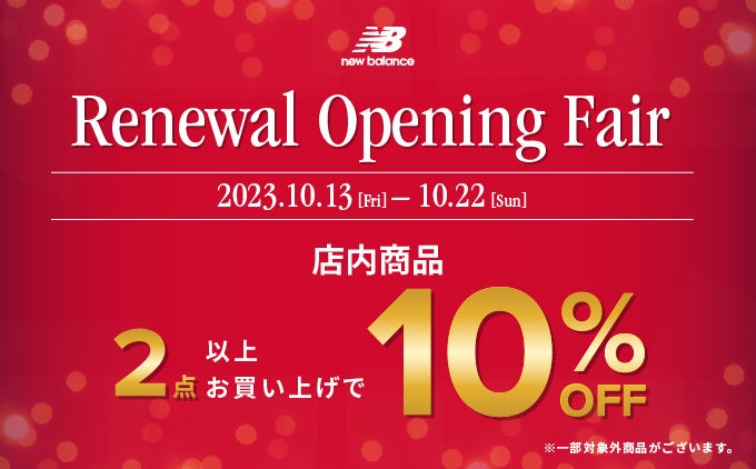 株式会社ニューバランスジャパン(本社所在地:東京都千代田区、代表取締役社長 久保田伸一)は、2023年10月13日(金)に「ニューバランスファクトリーストア入間」をリニューアルオープンします。