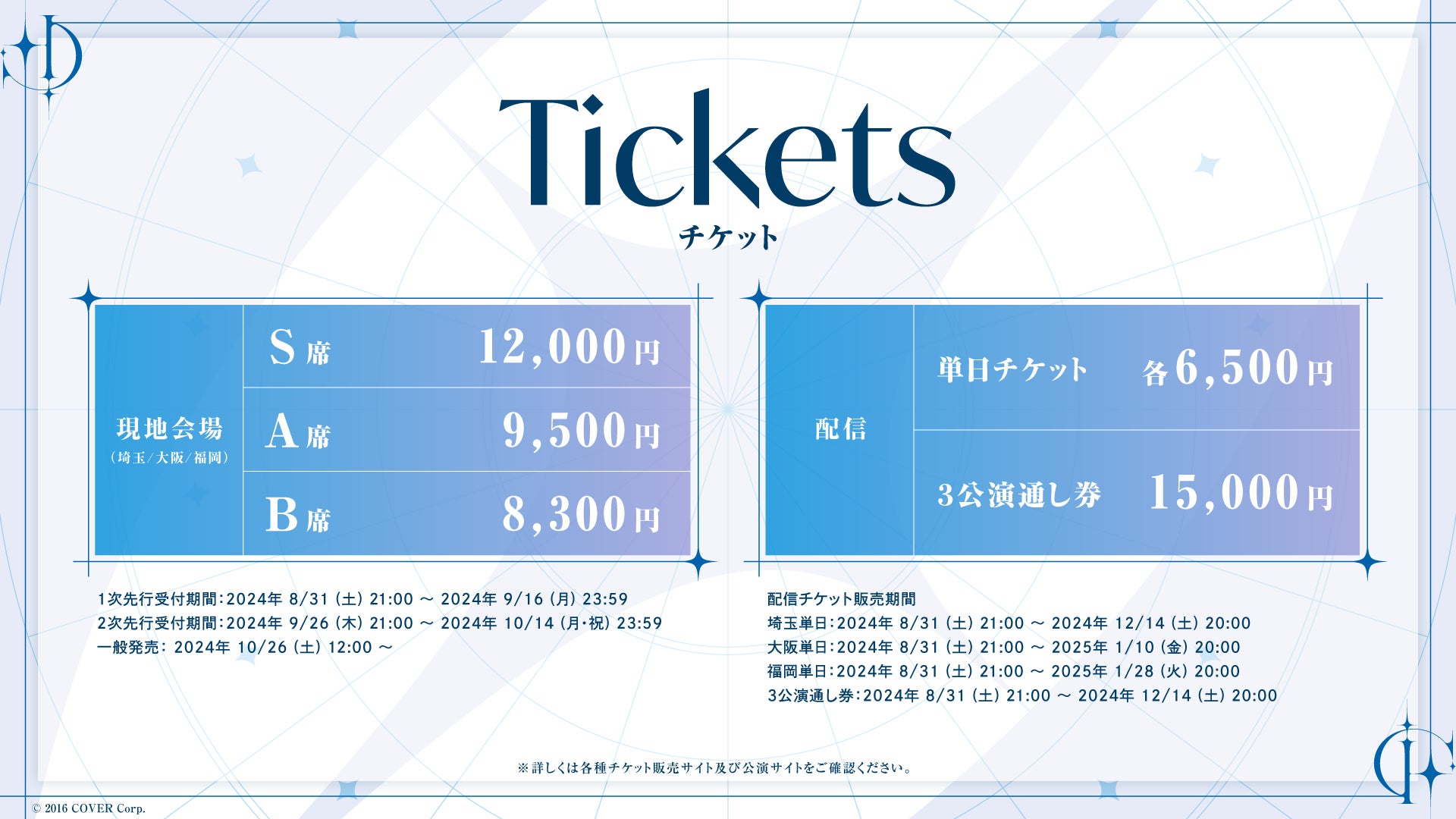 ▼配信チケット(SPWN、ZAIKO):単日チケット:各6,500円 3公演通し券:15,000円