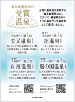 ※島根の温泉の素は、「美又の湯」、「旭の湯」、「有福の湯」、「風の国の湯」のうちのいずれか1袋が入っています