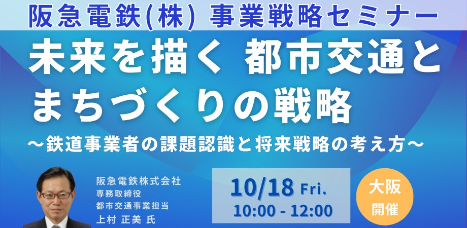 JPI(日本計画研究所)は、阪急電鉄株式会社 専務取締役 都市交通事業担当 上村 正美 氏を招聘し、都市交通とまちづくりの戦略について詳説いただくセミナーを開催します。