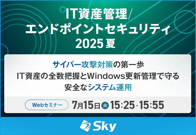 Sky株式会社は、2025年7月15日(火)にオンラインで開催される、SBクリエイティブ株式会社(ビジネス+IT)主催のセミナーイベント「IT資産管理/エンドポイントセキュリティ 2025 夏」に協賛いたします。