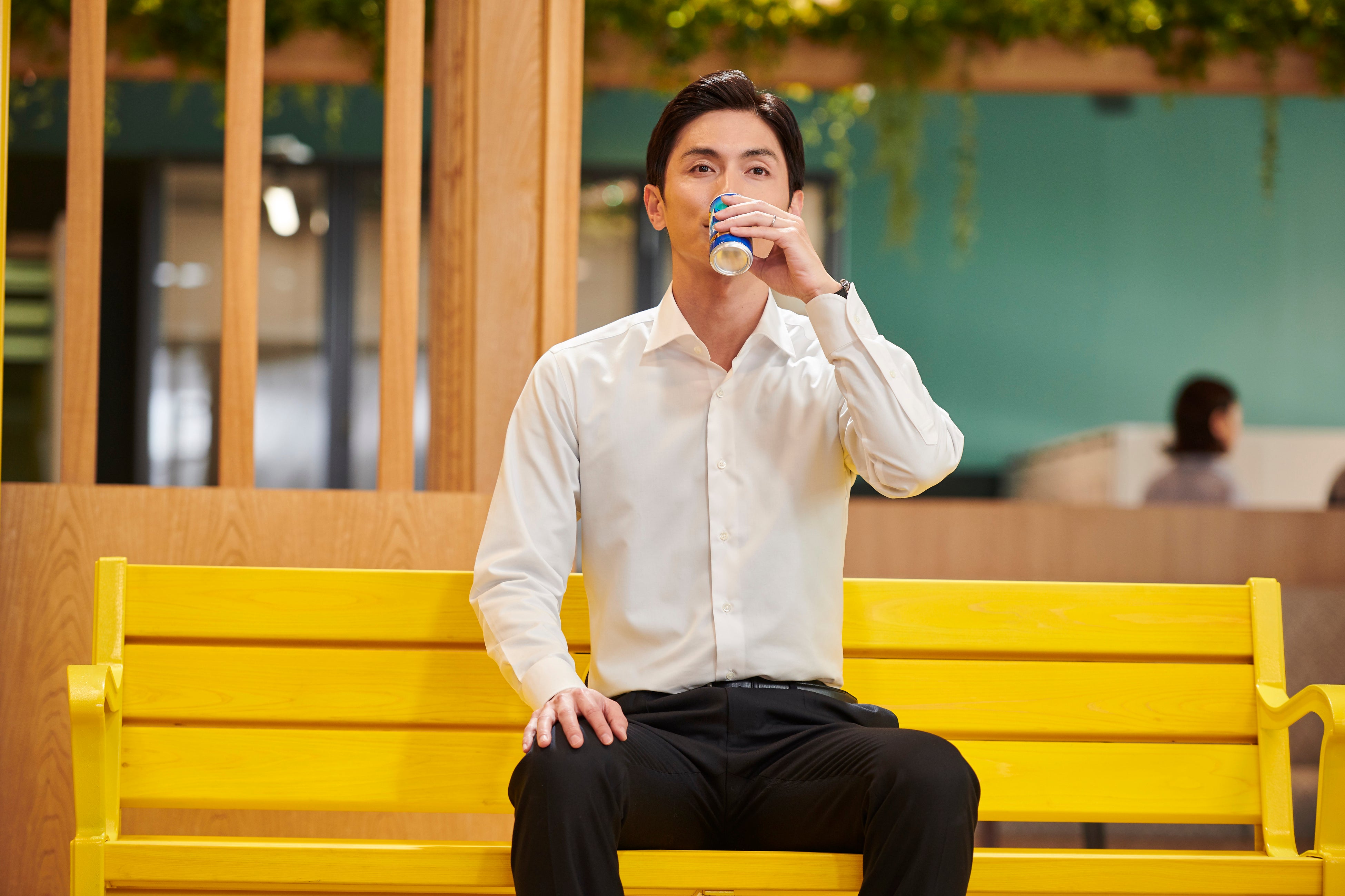Q. 今回、会社員役での出演でしたが、CMのように「忙しいけどひと息つきたい!」状況で、会社員の高良さんが休憩するとしたら、どんな瞬間、どんな風にひと息つきますか?