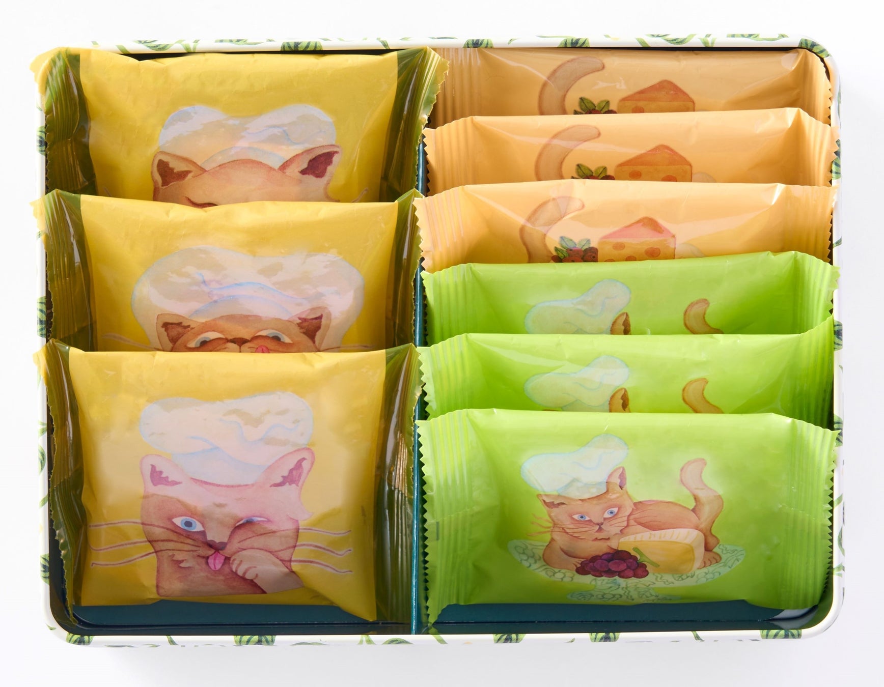 昨年の大人気限定商品が待望の定番化!ネコシェフが描かれた缶はお手土産にぴったり。