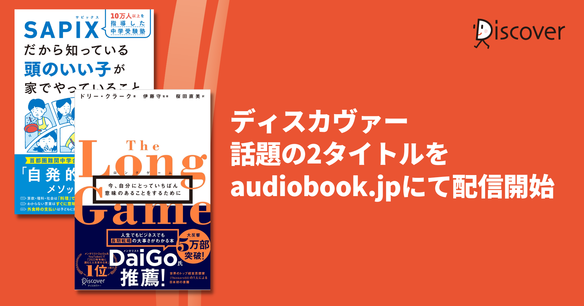 株式会社ディスカヴァー・トゥエンティワン(本社:東京都千代田区、取締役社長:谷口奈緒美)は2023年4月に、『10万人以上を指導した 中学受験塾 SAPIXだから知っている 頭のいい子が家でやっていること』(佐藤智・著)、『ロングゲーム』(ドリー・クラーク 著、伊藤守 監修、桜田直美 訳)の2タイトルのオーディオブックをaudiobook.jpで配信開始しました。